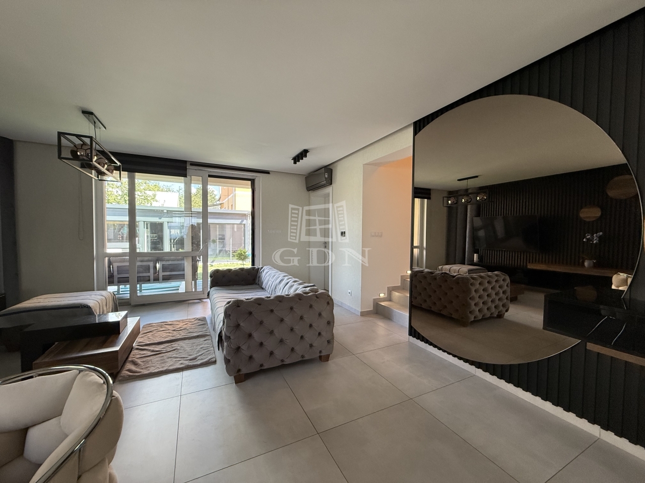 A ház téglaépítésű, szigetelt, tágas, világos, körbe napozott, minőségi anyagokból készült. A burkolatokat tekintve a szobákban magas minőségű laminált padló, a nappaliban a közlekedőben, valamint a konyhában és a vizes helyiségekben jó minőségű járólap található. A nyílászárók 3 rétegű műanyagból készültek, hőszigetelt üvegezéssel, rajtuk redőny és szúnyogháló található. A házban klíma kiépítésre került. A 20m2-es terasz, kényelmes pihenést biztosít. Az utcai kapu elektromosan nyitható. A telek örökzöldekkel, dísznövényekkel parkosított, pihenő terasz, gyermekjátszótér, és egy 27m2-es szauna/konditerem kiépített zuhanyzóval, gépészettel, valamint egy jakuzzi található benne.