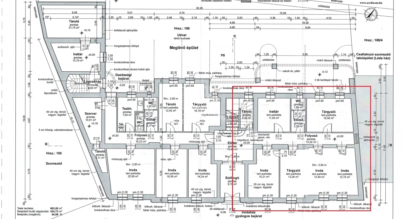 ‣ külön mosdó, WC, biztosított az irodákhoz