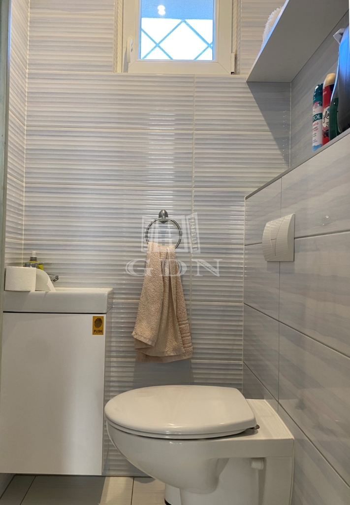 Fűtését egy új, Ariston kazán biztosítja padlófűtéses hőleadással, szinte minden helyiségben található hűtő-fűtő klímaberendezés is.